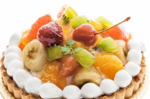 ケーキにフルーツを使うときは水分量に注意しましょう。