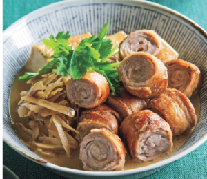 薄切り肉なのに、巻いたことによってとってもボリューミーでとても不思議な食感になります。