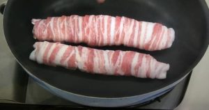 ②並べた豚バラを、きつめに一気に巻いていく(巻いた肉が2本できる)